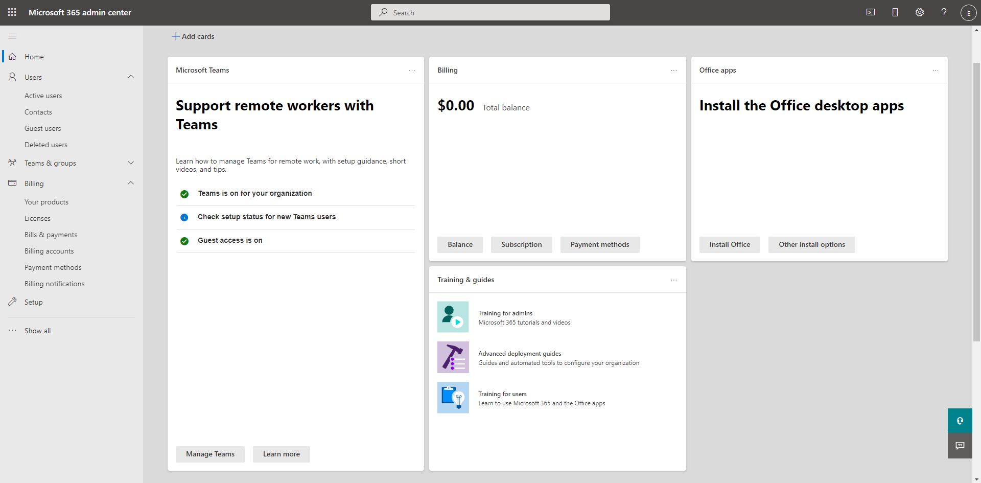Centro de administración de Microsoft 365Administre aplicaciones, servicios, datos, dispositivos y usuarios en los servicios de Microsoft 365.