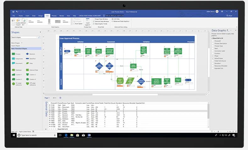 Trabaje en equipo para crear y compartir fácilmente diagramas vinculados a datos para darle vida a sus ideas.