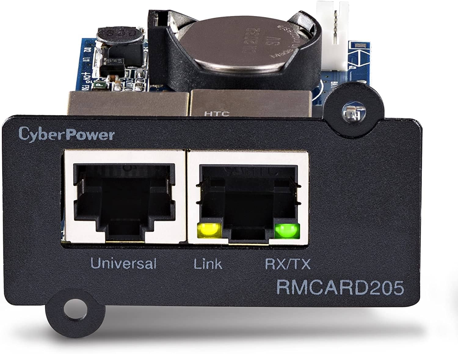 Administración remota: la CyberPower RMCARD205, una tarjeta de administración de red con todas las funciones, administra, monitorea y controla de forma remota determinados sistemas UPS y PDU ATS de CyberPower a través de un navegador web estándar, una interfaz de línea de comandos (CLI), SNMP o un sistema de administración de red (NMS).